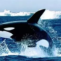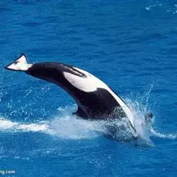 虎鲸(学名:Orcinus orca),虎鲸属,是一种大型齿鲸,海豚科动物,原则上可视作一种鲸鱼,一种海豚。其中大西洋2型、南极A型虎鲸以鲸类甚至蓝鲸为主要食物,远洋型虎鲸以鲨鱼为主要食物,是当之无愧的海中霸王。身长可达8-10米,体重9吨左右,头部略圆,具有不明显的喙;背鳍高而直立,弯曲长达1米;身体黑、白两色。两翼骨远隔开。颞窝大。下颌骨相对较短。在上、下颌每齿列有10-12枚圆锥形的齿。嘴巴细长,牙齿锋利,性情凶猛,善于进攻猎物。