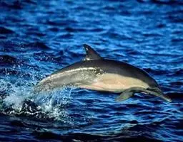真海豚,身体细而流线型。体色十分复杂而独特,通常十字交叉型,黄褐色在前灰色在后,背面黑色向下延伸,…