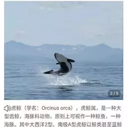 虎鲸,是鲸偶蹄目海豚科虎鲸属哺乳动物。成体体重6600千克,平均体长6-9米;头部略圆,…
