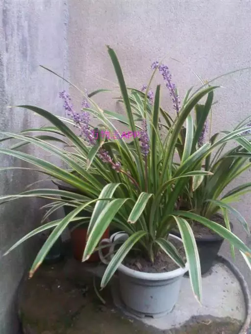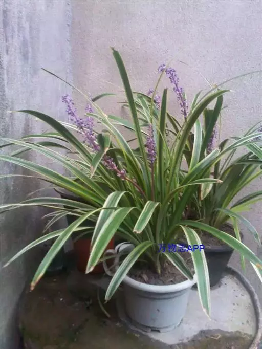 银纹沿阶草百合科沿阶草属,多年生草本,高约5~30cm。叶丛生,无柄,窄线形,革质,叶面有银白色纵纹,叶端弯垂。总状花序具15~20朵花,花常生或2~3朵簇生苞片腋内,花小,淡蓝色,夏季开放;果期8~10。
