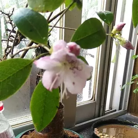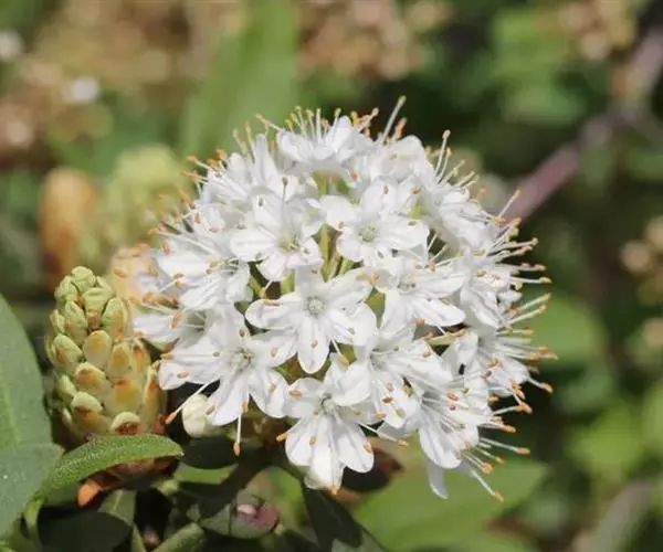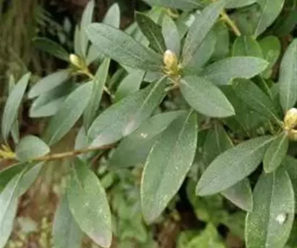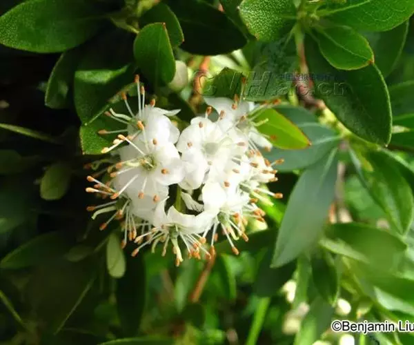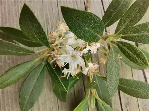 常绿灌木,高可达2.5m,茎灰棕褐色;枝条细瘦。幼枝被鳞片及细柔毛。叶近革质,倒披针形、长圆状椭圆形至披针形,长(1.5-)3~4(-6)cm,宽0.4~1.2(-2.5)cm,顶端钝,急尖或圆,具小突尖,基部狭楔形,上面深绿色,有光泽,常被疏鳞片,下面黄绿色,被淡或深棕色有宽边的鳞片,鳞片相互重叠、邻接或相距为其直径的角状披针形或披针状线形,外面被鳞片,被缘毛;花冠钟状,长4~8(-10)mm,外面被鳞片,内面无毛,花裂片5,较花管稍长;雄蕊10,花丝无毛;子房长1~3mm,5~6室,密被鳞片,花柱与雄蕊等长或较短,无鳞片。蒴果长圆形,长(4-)5~6(-8)mm,被疏鳞片。花期5~6月,果期8~11月。