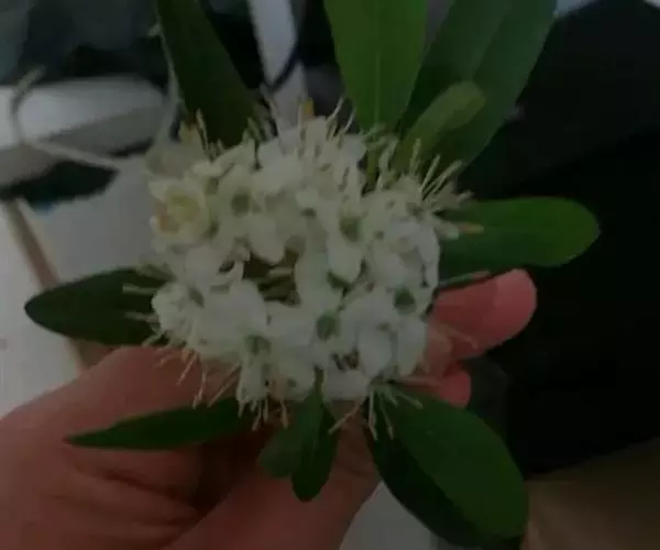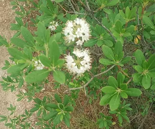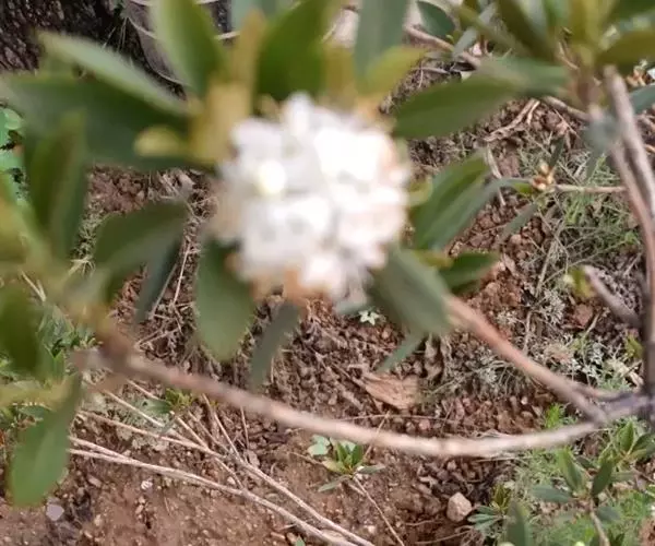性状鉴别: 叶片多反卷,有的破碎,完整者展平后是长椭圆形或倒披针形,长2~5cm,宽0.5~1.5cm,先端钝尖,基部楔形,全缘,上面灰绿色或棕褐色,有灰白色毛茸,下面淡黄绿色,有密集的棕红色小点。主脉于下面突起,侧脉4~7对。叶柄长约3mm。近革质,易碎。枝圆柱形,顶端有圆锥花序,有多数小花,花冠钟形,白色,外被淡棕色卵状苞片。气芳香,味苦。以叶片完整、色暗绿者为佳。