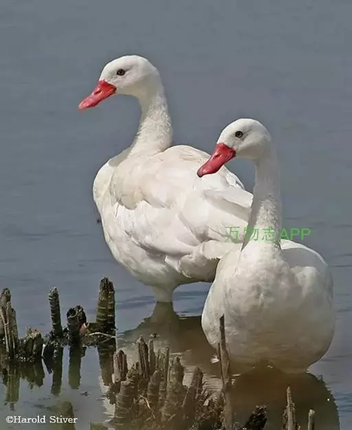 扁嘴天鹅(学名:Coscoroba coscoroba):体长90-115厘米,体羽白色,羽端黑色,在飞行时则很明显。雁喙和脚红色。栖息于茂密的沼泽及湖泊,主要吃草及水生植物,也会吃蚌类及鱼类。分布于南美洲,冬天会向北迁徙至智利中部、阿根廷北部、乌拉圭及巴西东南端。