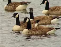 黑雁是雁形目鸭科黑雁属鸟类,又称黑鹅。头、颈、胸、嘴及脚黑褐色;虹膜褐色;背及两翼灰褐色;尾下覆羽白色;胸侧及胁部多近白色纹;颈部两侧各具一个特征性白色横纹,在颈前后断开,未能联成颈环。幼鸟颈部无白斑,而翅上多白色横纹。黑雁繁殖于北美洲、西伯利亚极地的苔原冻土带,越冬于南方沿海的草地及河口。在中国安徽也能见其身影。主要栖息在海湾、海港及河口等地,在冬季里大多出现在有耐碱植物生长的湖泊和水库周围,也出现在周围地势低洼的咸水湖和沿海地区,偶尔还出现在农田地里。性活跃,喜集群,常成群活动和栖息。主要以植物性食物为食。繁殖期在6-8月,雌鸟孵卵,雄鸟通常在距巢100米以内范围内守候警诫。雌鸟孵卵时常将头和颈朝地面平伸出去以降低高度。孵化期为22-28天。黑雁被列入中国林业局2000年8月1日发布的《国家保护的有益的或者有重要经济、科学研究价值的陆生野生动物名