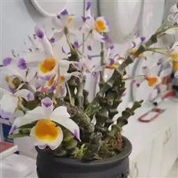 通常选用四壁多孔的塑料或陶瓷花盆,用碳根、泥炭藓、树皮块、木炭块等作盆栽材料。根据兰苗的大小,选择不同规格的花盆,但不宜用大盆栽小苗口上述栽好材料在使用前必需在清水中浸泡1天以上备用。盆底要多垫大瓦片或碎砖块,深度至盆底约1/3处,然后将兰苗放于盆中央,并在一旁插一细竹竿以固定兰苗,再填入其他栽培材料,注意根与根之间用材料隔开。
