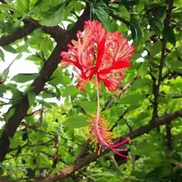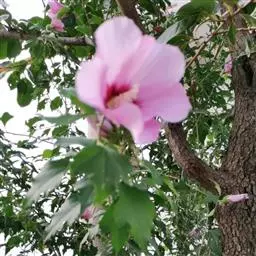 海滨木槿是锦葵科木槿属植物,落叶小乔木,株高3-5米,胸径20厘米,扁球形树冠,枝叶繁盛。…