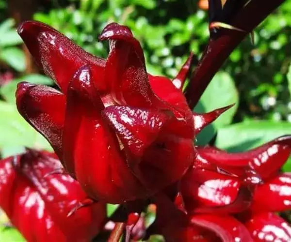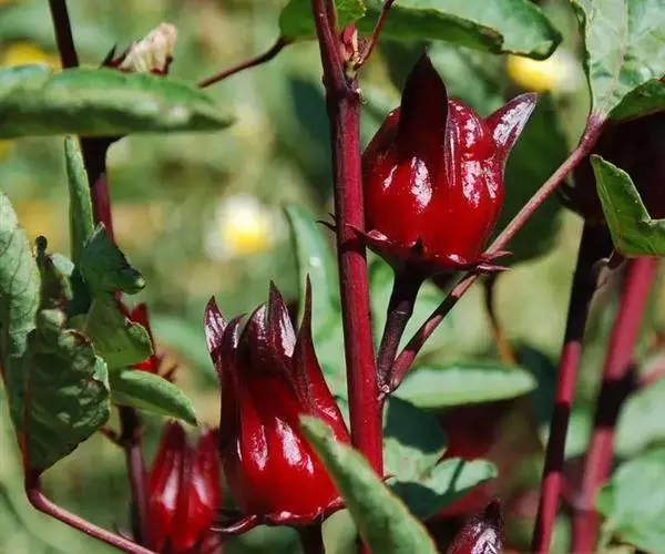 观赏:玫瑰茄花紫红色,色泽艳丽,花冠与花尊美丽别致,是美化环境极好的观赏植物。