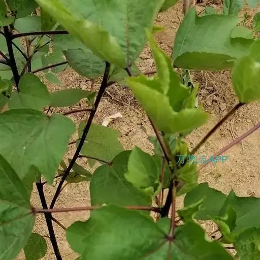 一年生直立草本,高达2米,茎淡紫色,无毛。叶异型,下部的叶卵形,不分裂,上部的叶掌状3深裂,裂片披针形,长2-8厘米,宽5-15毫米,具锯齿,先端钝或渐尖,基部圆形至宽楔形,两面均无毛,主脉3-5条,背面中肋具腺;叶柄长2-8厘米,疏被长柔毛;托叶线形,长约1厘米,疏被长柔毛。