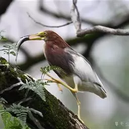 紫背苇鳽是鹭科、苇鳽属动物,为涉禽,体长约33厘米。头顶黑色,…