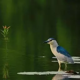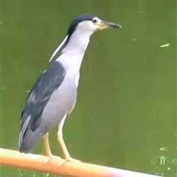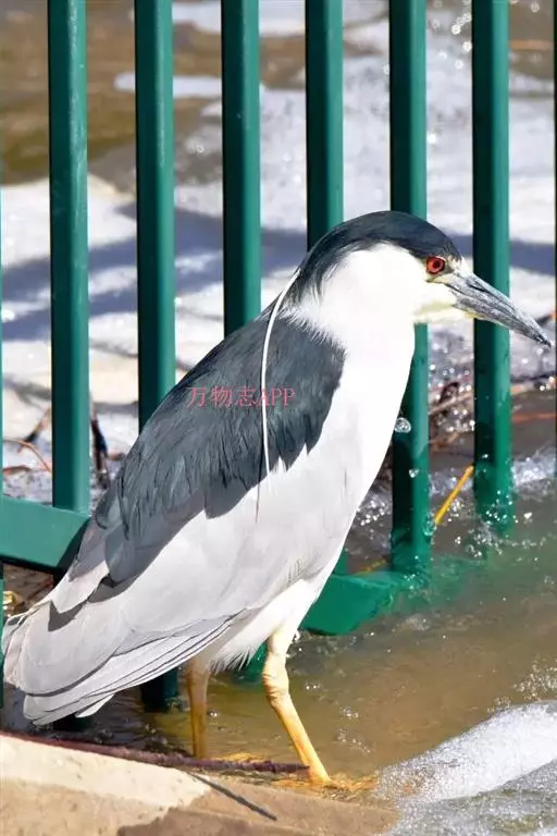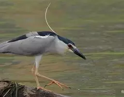夜鹭(学名:Nycticorax nycticorax)是中型涉禽,体长46-60厘米。体较粗胖,颈较短;嘴尖细,微向下曲,黑色;胫裸出部分较少,脚和趾黄色;头顶至背黑绿色而具金属光泽;上体余部灰色;下体白色;枕部披有2-3枚长带状白色饰羽,下垂至背上,极为醒目。
