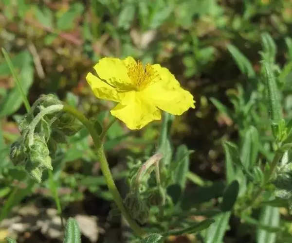 伞形花序多花;花梗纤细,长2-8厘米,幼时被长柔毛,后变无毛;苞片小,卵形,长1-2毫米。花芽卵圆形,直径5-8毫米;萼片卵圆形,舟状,长5-8毫米,无毛或疏生柔毛,早落;花瓣倒卵形,长约1厘米,全缘,黄色;雄蕊长约8毫米,花丝丝状,黄色,花药长圆形,长约1毫米;子房线形,长约8毫米,绿色,无毛,花柱长约1毫米,柱头2裂。