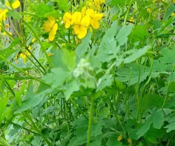 白屈菜 ①治水肿黄疸:白屈菜、蒲公英、商陆、臭草根,茵陈。水煎服。(《四川中药志》)