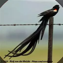发冠卷尾是中型鸟类,体长28-35厘米。通体绒黑色缀蓝绿色金属光泽,额部具发丝状羽冠,…