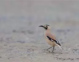 黑尾地鸦:体羽沙褐色,额、头顶以至后颈呈发金属紫蓝辉的黑色。头侧乳黄色。整个背面,包括两肩葡萄褐色。…