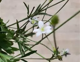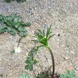 花葶只在上部有疏柔毛;苞片3,似基生叶,无柄,不等大,菱状三角形或菱形,长4.5-6厘米,三深裂;花梗2-3,长4.2-7.5厘米,有疏柔毛;萼片5,白色,倒卵形或椭圆形,长7-10毫米,宽4-5.5毫米,顶端钝或圆形,外面有疏柔毛;雄蕊长约萼片之半,花药椭圆形,长约0.8毫米,花丝丝形;心皮约8,子房密被淡黄色短柔毛,无花柱,柱头近三角形。4月至6月开花。