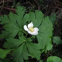 鹅掌草(学名:Anemone flaccida Fr. Schmidt)是毛茛科,银莲花属多年生草本植物,植株高可达40厘米。根状茎斜,近圆柱形,基生叶有长柄;叶片薄草质,五角形,表面有疏毛,背面通常无毛或近无毛,脉平;叶柄无毛或近无毛。花葶只在上部有疏柔毛;苞片似基生叶,无柄,菱状三角形或菱形,花梗有疏柔毛;萼片白色,倒卵形或椭圆形,花药椭圆形,花丝丝形;4月至6月开花。