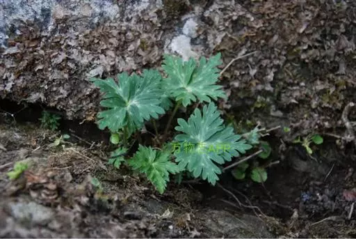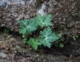基生叶1-2,有长柄;叶片薄草质,五角形,长3.5-7.5厘米,宽6.5-14厘米,基部深心形,三全裂,中全裂片菱形,三裂,末回裂片卵形或宽披针形,有1-3齿或全缘,侧全裂片不等二深裂,表面有疏毛,背面通常无毛或近无毛,脉平;叶柄长10-28厘米,无毛或近无毛。