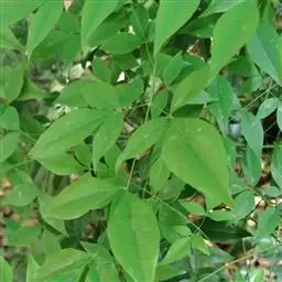 南天竺 常绿小灌木。茎常丛生而少分枝,高1-3米,光滑无毛,幼枝常为红色,老后呈灰色。叶互生,集生于茎的上部,三回羽状复叶,长30-50厘米;二至三回羽片对生;小叶薄革质,椭圆形或椭圆状披针形,长2-10厘米,宽0.5-2厘米,顶端渐尖,基部楔形,全缘,上面深绿色,冬季变红色,背面叶脉隆起,两面无毛;近无柄。