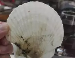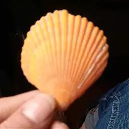 海湾扇贝(学名:Argopecten irradians)是扇贝科、海湾扇贝属贝类。贝壳中等大小,壳质较薄,但很坚韧,呈圆形。壳较凸,两壳及壳两侧均略等,壳背缘较直,腹缘及前、后缘均呈圆形。两壳关闭时两侧略留有狭孔。壳顶尖、低,不突出壳背缘。壳顶前方和后方有壳耳左壳两耳略等右壳前耳略较后耳小。壳表多呈灰褐色或浅黄褐色,具深褐色或紫褐色云状花斑,一般左壳的颜色较浅而右壳较深。两壳面皆布满放射肋肋呈圆形,较光滑,约有18条左右,肋上的生长小棘较低平左壳肋较窄,肋间距离较宽右壳相反,肋较宽而肋间距离较窄。贝壳内面色浅,略近白色,稍具光泽闭壳肌痕略显,近圆形有与壳面相应的肋与沟。铰合部较细长,韧带深褐色,位于三角形的韧带槽中,中央关节较明显。