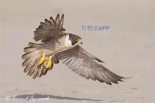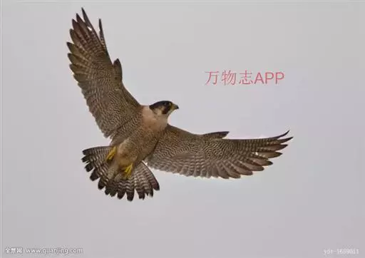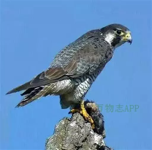 游隼(学名:Falco peregrinus):是中型猛禽,共有18个亚种。体长41-50厘米。翅长而尖,眼周黄色,颊有一粗著的垂直向下的黑色髭纹,头至后颈灰黑色,其余上体蓝灰色,尾具数条黑色横带。下体白色,上胸有黑色细斑点,下胸至尾下覆羽密被黑色横斑。飞翔时翼下和尾下白色,密布白色横带,常在鼓翼飞翔时穿插着滑翔,也常在空中翱翔,野外容易识别。幼鸟上体暗褐色,下体淡黄褐色,胸、腹具黑褐色纵纹。