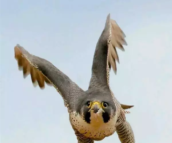 鼻孔小锥体 在游隼结束俯冲时身体所承受的压力可达25倍重力,这是已知大型动物中已知的最大值。要知道,战斗机飞行员在进行俯冲时,所受最大重力也不过9克,25克那么高的重力加速度足以使他们失去意识和知觉。游隼身体的所有部分,几乎都适应高速飞行。在游隼极速俯冲捕猎时,击中眼睛的沙子像子弹一样致命!因此,游隼有一层额外的眼睑,这层眼睑叫做瞬膜,可以保护眼球。由于拥有一种特殊的化学成份,游隼的眼泪异常的粘稠,普通的眼泪会很快蒸发掉。另外游隼的鼻外有一个小锥体,在高速飞行时用来防止空气绕过鼻孔,使气流顺畅通入鼻腔到达体内。游隼的通气诀窍,可以帮助早期的喷气飞机突破速度限制,早期的喷气式飞机进气道前端中央也有一个类似游隼鼻孔的锥体。