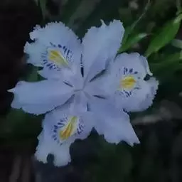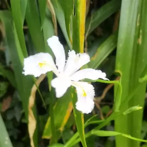 亮叶鸢尾为常绿多年生草本植物。叶面光滑、亮绿色,花茎扁平叶状。原产于巴西。