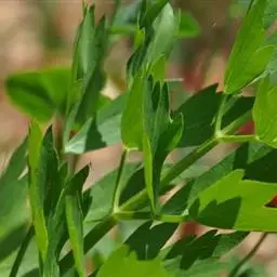 多年生草本,高达1米。根茎发达,具膨大的结节。茎直立,圆柱形,中空,具条纹,基生叶具长柄,柄长可达20厘米;叶片轮廓宽三角形,长10-15厘米,宽15-18厘米,2回三出式羽状全裂;第一回羽片轮廓长圆状卵形,长6-10厘米,宽5-7厘米,下部羽片具柄,柄长3-5厘米,基部略扩大,小羽片卵形,长约3厘米,宽约2厘米,边缘齿状浅裂,具小尖头,顶生小羽片先端渐尖至尾状;茎中部叶较大,上部叶简化。