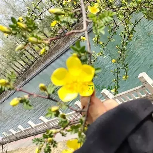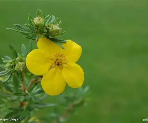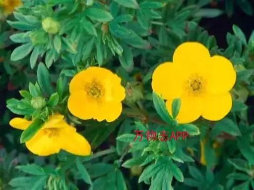 金露梅(学名:Potentilla fruticosa L.)是蔷薇科,委陵菜属灌木植物,高可达2米,树皮纵向剥落。小枝红褐色,羽状复叶,叶柄被绢毛或疏柔毛;小叶片长圆形、倒卵长圆形或卵状披针形,两面绿色,托叶薄膜质,单花或数朵生于枝顶,花梗密被长柔毛或绢毛;萼片卵圆形,顶端急尖至短渐尖,花瓣黄色,宽倒卵形,顶端圆钝,比萼片长;花柱近基生,瘦果褐棕色近卵形,6-9月开花结果。