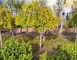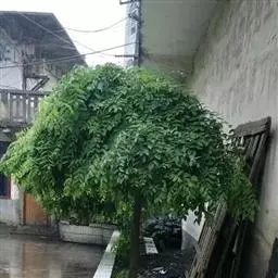 垂枝榆抗逆性强,工程养护管理比较粗放,定植后灌1~2次透水就可以保证成活。除草、适当施肥可促进砧木和接穗的生长发育,此外要及时除去砧木上的蘖生枝芽,特别是接穗旁边和下部的蘖生芽,以利于接穗叶片吸收足够的养分,促进光合作用。对株距小、空间少的植株通过绑扎,抑强促弱,纠正偏冠,使枝条均匀生长。当垂枝接近地面时,从离地面30~50厘米处剪齐,让其先形成一个金黄色圆柱体,为以后造型奠定基础。