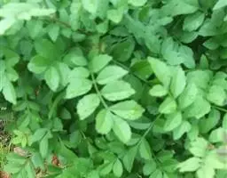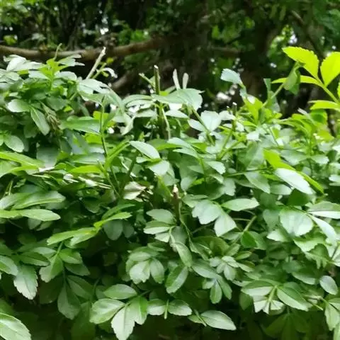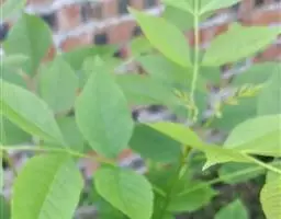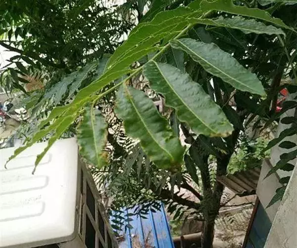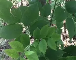 羽状复叶长15-25厘米;叶柄长4-6厘米,基部不增厚;叶轴挺直,上面具浅沟,初时疏被柔毛,旋即秃净;小叶5-7枚,硬纸质,卵形、倒卵状长圆形至披针形,长3-10厘米,宽2-4厘米,顶生小叶与侧生小叶近等大或稍大,先端锐尖至渐尖,基部钝圆或楔形,叶缘具整齐锯齿,上面无毛,下面无毛或有时沿中脉两侧被白色长柔毛,中脉在上面平坦,侧脉8-10对,下面凸起,细脉在两面凸起,明显网结;小叶柄长3-5毫米。