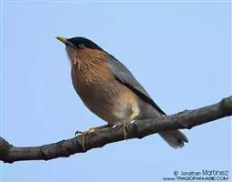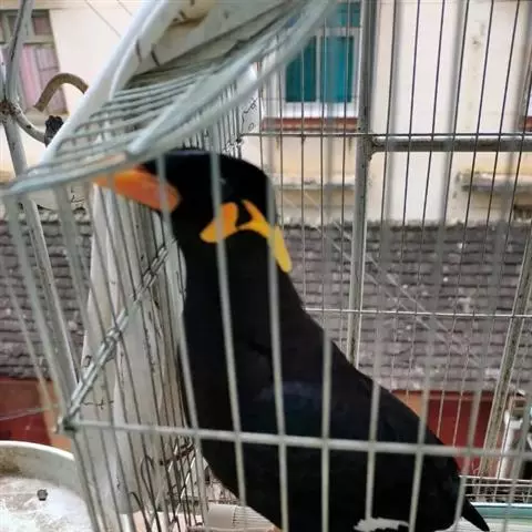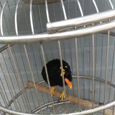 金冠树八哥为椋鸟科树八哥属的鸟类。体长约23厘米,闪辉黑色。特征为具翼斑及颏黄色,脸颊裸露皮肤粉黄色。…