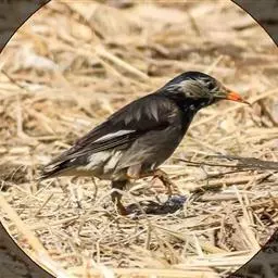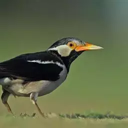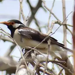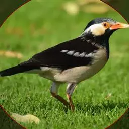 斑椋鸟:是中等体型的黑白色椋鸟,体长24厘米。头顶、头侧、翼斑、腰及腹部白色,喉、胸及上体余部黑色,…