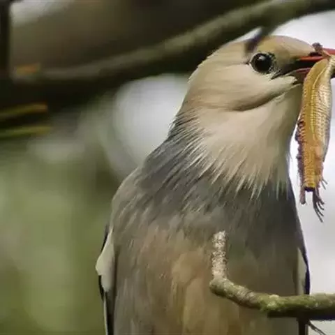 粉红椋鸟是雀形目椋鸟科粉红椋鸟属鸟类。头顶具紫色羽冠;头部、颈、颏、喉黑色具蓝紫色金属光泽;背和腹粉红色;两翅和尾黑褐色;虹膜暗褐色;嘴黄色或粉红色,上嘴基部黑色,冬季嘴为褐色;脚黄色。嘴较其他椋鸟短而钝,上嘴弯曲较明显;脚较粗壮,爪发达。粉红椋鸟分布于欧洲东南部、西伯利亚、西亚、印度和斯里兰卡岛等地区,在中国新疆西部和北部、西藏西部、澳门、台湾等地也能看到其身影。栖息于干旱平原、荒漠或半荒漠地区。常成群活动,鸣声嘈杂。主要在地面觅食,以甲虫、蝗虫、毛虫等各种昆虫为食,偶食植物果实和种子。繁殖期5—7月,营巢于岩壁缝隙、树洞中,每窝产卵4—6枚,卵白色或淡蓝色,孵化期13—15天。雏鸟晚成性,由雌雄亲鸟共同喂养。粉红椋鸟种群数量较少,已被列入中国国家林业局2000年8月1日发布的《国家保护的有益的或者有重要经济、科学研究价值的陆生野生动物名录》。