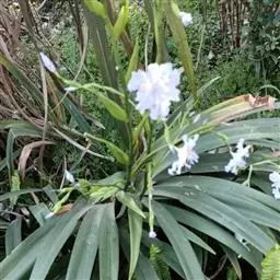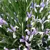 花为浅蓝色、蓝色或蓝紫色,花被上有较深色的条纹,花茎光滑,高5-10厘米;苞片3-5枚,草质,绿色,边缘白色,披针形,长4.5-10厘米,宽0.8-1.6厘米,顶端渐尖或长渐尖,内包含有2-4朵花;花乳白色,直径5-6厘米;花梗长4-7厘米;花被管甚短,长约3毫米,外花被裂片倒披针形,长4.5-6.5厘米,宽0.8-1.2厘米,顶端钝或急尖,爪部楔形,内花被裂片狭倒披针形,长4.2-4.5厘米,宽5-7毫米,爪部狭楔形;雄蕊长2.5-3.2厘米,花药黄色,花丝白色;子房纺锤形,长3-4.5厘米。