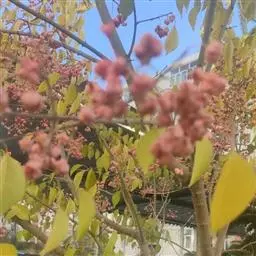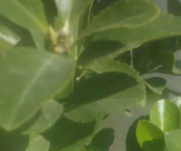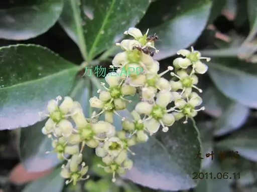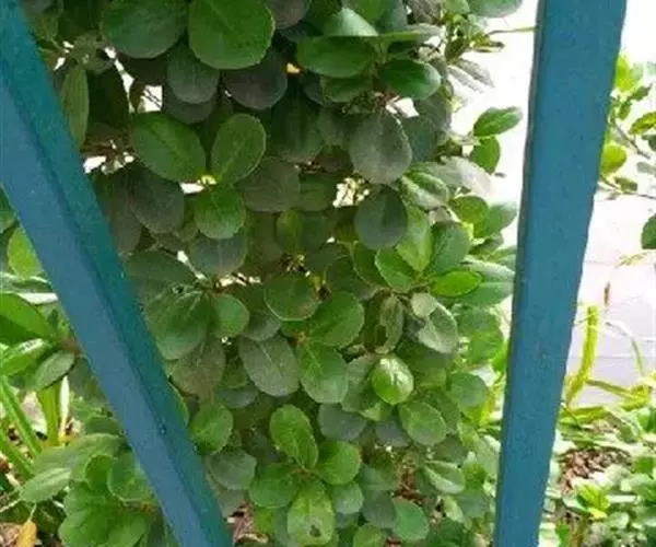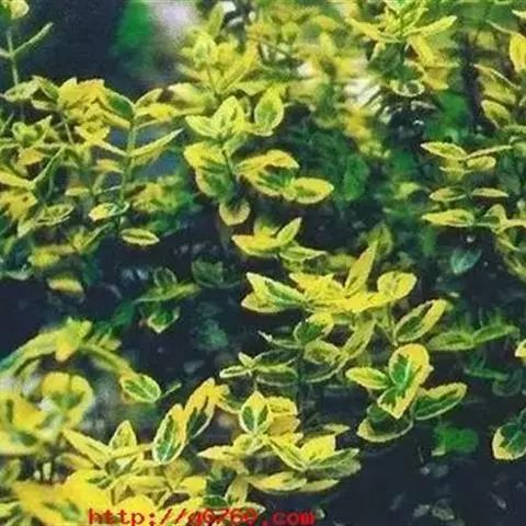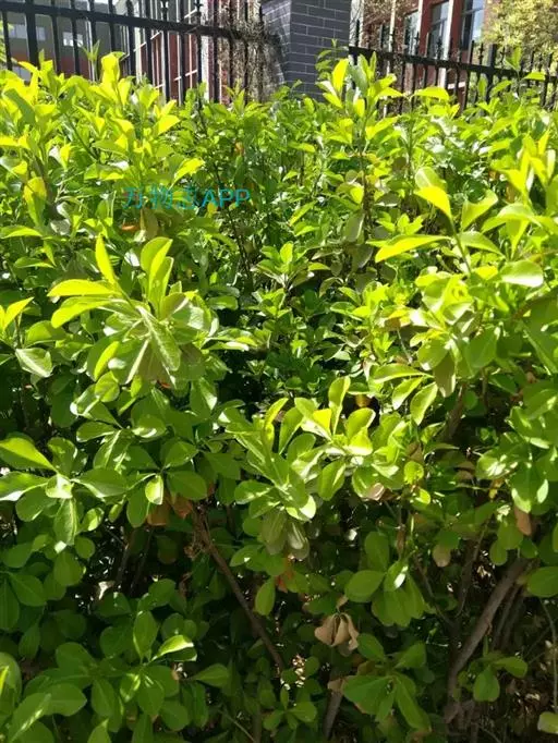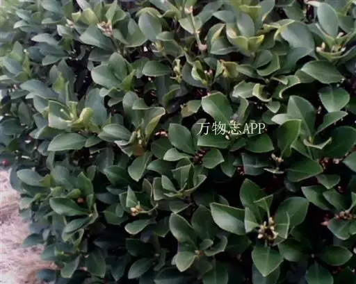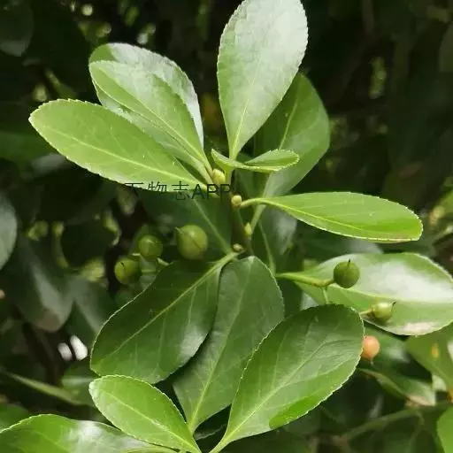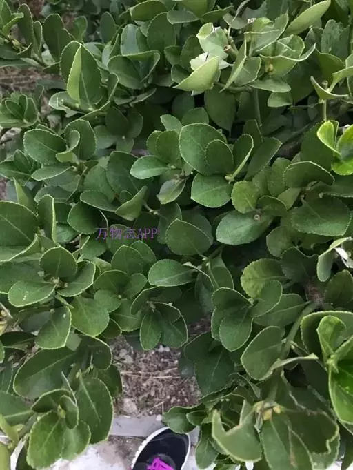 冬青卫矛(学名:Euonymus japonicus Thunb.):俗名大叶黄杨或简称“黄杨”。灌木,高可达3米;小枝四棱,具细微皱突。叶革质,有光泽,倒卵形或椭圆形,先端圆阔或急尖,基部楔形,边缘具有浅细钝齿。聚伞花序5-12花,分枝及花序梗均扁壮,花白绿色,直径5-7毫米;花瓣近卵圆形,长宽各约2毫米。蒴果近球状,淡红色;种子每室1,顶生,椭圆状,假种皮桔红色,全包种子。花期6-7月,果熟期9-10月。