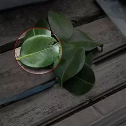 危害大叶黄杨叶片,被害植株叶片表现皱缩畸形,影响生长。白粉病多分布于大叶黄杨的叶正面,少有生长在叶背面的,单个病斑圆形,白色病斑扩大相互愈合之后不规则。
