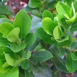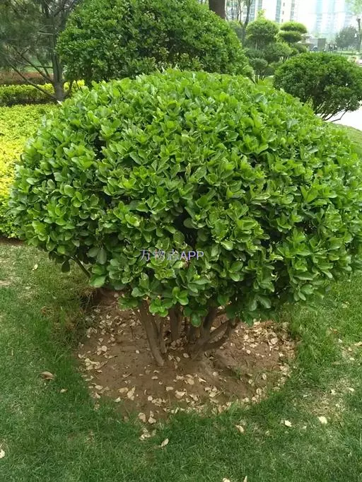 常绿灌木或小乔木,高达8米。 叶光亮革质,倒卵形或窄长椭圆形,长3-6厘米,宽2-3厘米。 聚伞花…