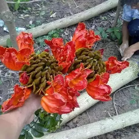 火烧花 Kurz)是紫葳科火烧花属常绿乔木;树皮光滑;叶为奇数羽状复叶对生,小叶卵形或卵状披针形,…