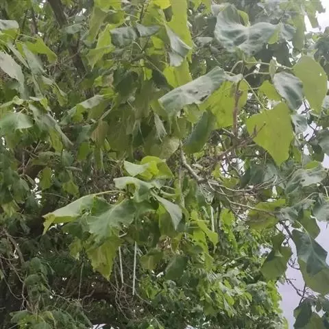 吊灯树(拉丁学名:Kigelia africana (Lam.) Benth.),别名:香肠树,腊肠树(台湾木本植物志);乔木,高13-20米,枝下高约2米,胸径约1米。奇数羽状复叶交互对生或轮生,叶轴长7.5-15厘米;小叶7-9枚,长圆形或倒卵形,顶端急尖,基部楔形,全缘,叶面光滑,亮绿色,背面淡绿色,被微柔毛,近革质,羽状脉明显。喜高温、湿润、阳光充足的环境,在中国热带地区都有分布。