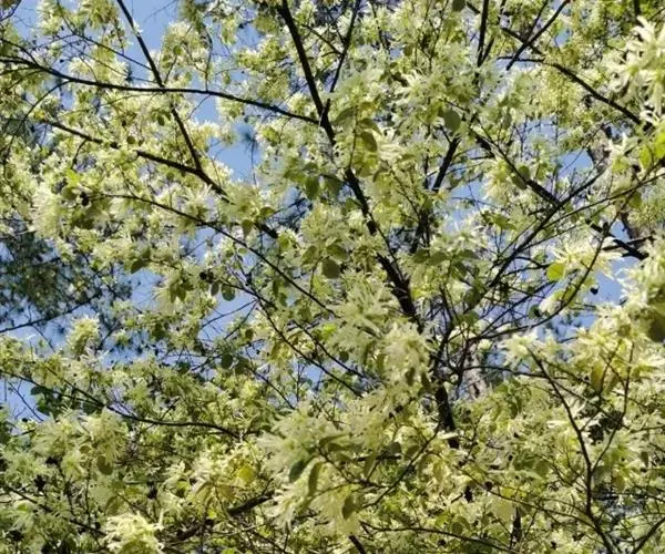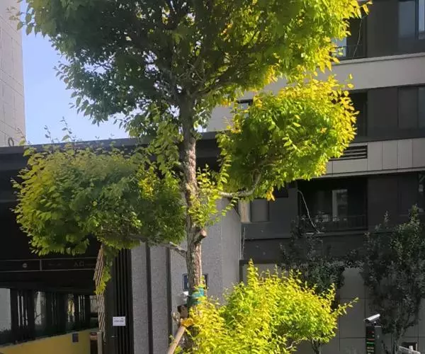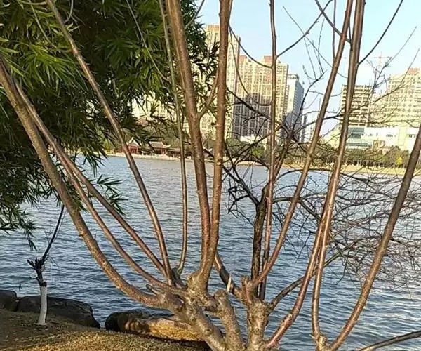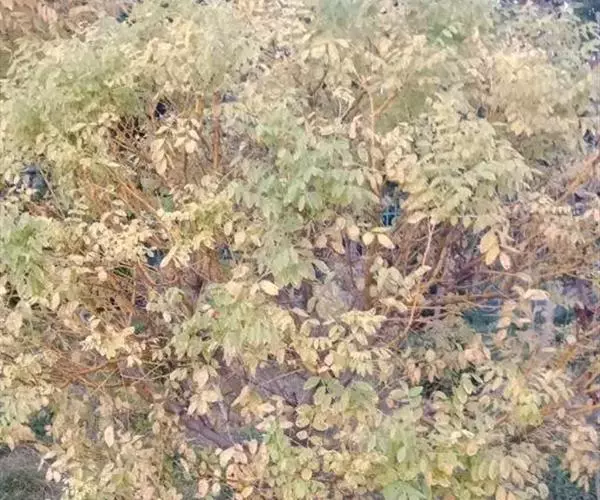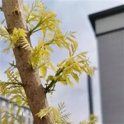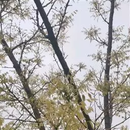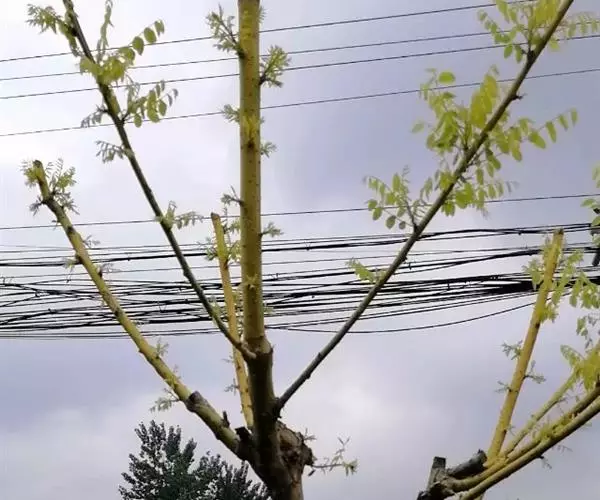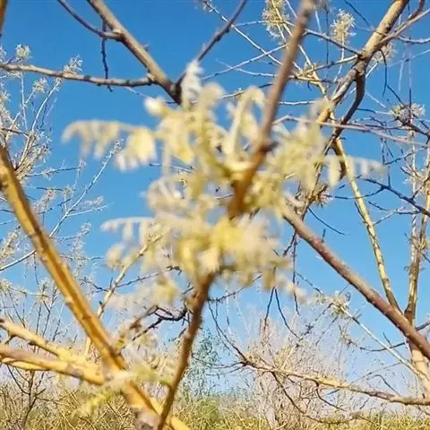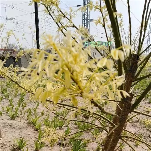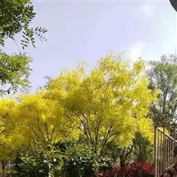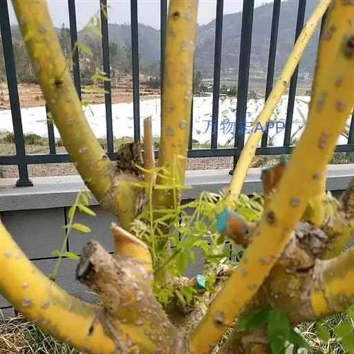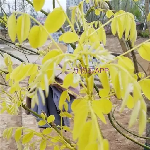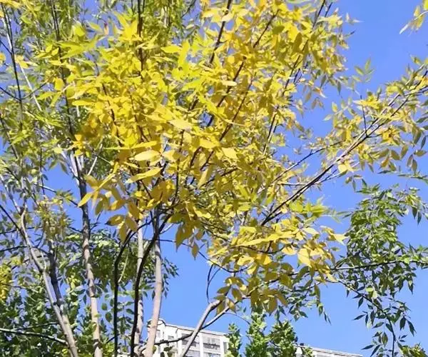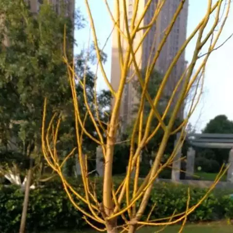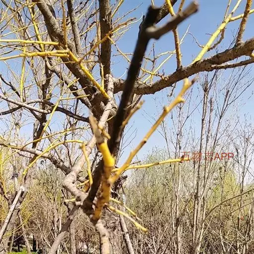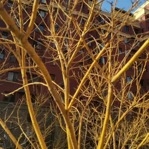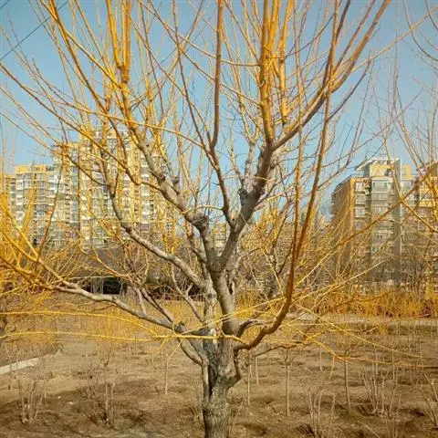 金枝槐最明显可以看到是时间是冬季,因为是落叶乔木,冬季落完叶子,只剩下枝条,枝条呈金黄色。金叶槐春夏秋三季,叶片呈金黄色,枝条为绿色。