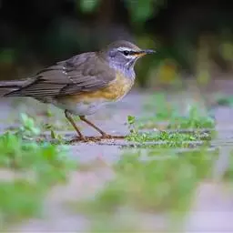 白眉歌鸫,是雀形目鸫科鸫属鸟类。体型略小并具有褐色斑点的歌鸫,上体橄榄褐色,眉纹白色,脸部斑驳,…