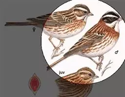 北方亚种雄鸟额、头顶、枕、后颈黑褐色具不甚显著的灰白色或灰色羽缘。上背和两肩亦为黑褐色具不明显的棕栗色羽缘,有的标本从头至下背黑褐色具橄榄褐色羽缘,腰和尾上覆羽棕色更著;尾羽黑褐色,除最外侧1-2对尾羽外,其余尾羽基部羽缘均缀有棕栗色。两翅黑褐色,外翈缘以棕白色,翅上大覆羽和中覆羽多呈栗棕色具白色端斑,飞羽黑褐色,除第一枚初级飞羽外翈无棕色渲染、内翈基部缀有淡棕色外,其余飞羽内外翈均缀有棕栗色,且越往内棕栗色所占面积越大,在两翼形成明显的棕栗色翼斑。眼先和耳羽黑褐色,眉纹白色或棕白色,颊棕白色具黑色斑点。颏、喉棕白或淡皮黄白色,喉的两侧缀有黑褐色斑点,有的标本里褐色斑点一直扩展到整个喉部;胸和两胁黑褐色或黑色、具棕白色或白色羽缘;腹白色,尾下覆羽棕褐色具白色羽端。雌鸟和雄鸟相似,但上体较少棕色,腋羽和翅下覆羽棕栗色。