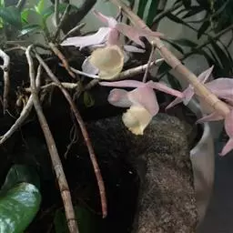 球花石斛,是兰科石斛属的多年生附生草本。茎直立或斜立,圆柱形,粗壮,基部收狭为细圆柱形,不分枝,…