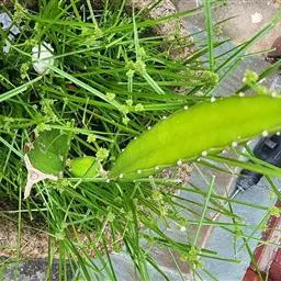 火龙果的气生根很多,可以转化为吸收根。进行扩穴改土,可逐渐扩宽根系分布;也可绑扎牵引诱导气生根下地。