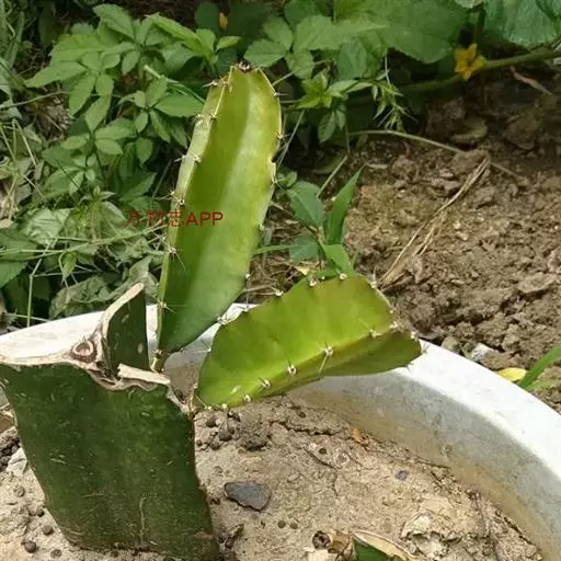黄肉类型的火龙果砧木可选择野生三角柱(霸王花)等,红肉类型的火龙果可选择白肉类型的火龙果作砧木。选择1-2年生的三角柱,自茎节处从母体上截下,扦插在砂质较重的疏松土壤中(深度为插牢为宜),上搭荫棚,浇透水即可做砧木,约半月插活后就可进行嫁接。接穗以当年生发育较好的枝条为宜。