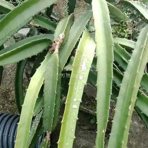 由于火龙果采收期长,要重施有机质肥料,氮、磷、钾复合肥要均衡长期施用。完全使用猪、鸡粪含氮量过高的肥料,使枝条较肥厚,深绿色且很脆,大风时易折断,所结果实较大且重,品质不佳,甜度低,甚至还有酸味或咸味。因此,开花结果期间要增施钾肥、镁肥和骨粉,以促进果实糖分积累,提高品质。