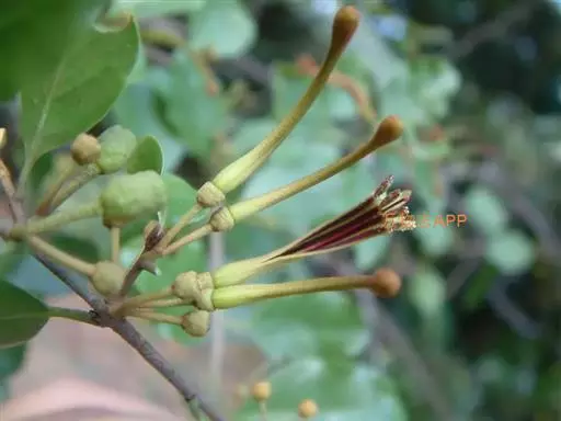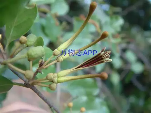 总状花序,1-3个生于小枝已落叶腋部或叶腋,具花(2-)3-4(-5)朵,密集呈伞形,花序和花均密被褐色星状毛,总花梗和花序轴共长1-2(-3)毫米;花梗长2-3毫米;苞片卵状三角形,长约1毫米;花红色,花托椭圆状,长2-3毫米;副萼环状,具4齿;花冠花蕾时管状,长2.2-2.8厘米,稍弯,下半部膨胀,顶部椭圆状,裂片4枚,披针形,长6-9毫米,反折,开花后毛变稀疏;花丝长约2毫米,花约长3-4毫米,药室常具横隔;花柱线状,柱头圆锥状。