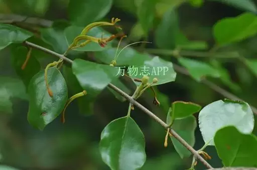 灌木,高0.5-1米;嫩枝、叶密被褐色或红褐色星状毛,有时具散生叠生星状毛,小枝黑色,无毛,具散生皮孔。叶近对生或互生,革质,卵形、长卵形或椭圆形,长5-8厘米,宽3-4.5厘米,顶端圆钝,基部近圆形,上面无毛,下面被绒毛;侧脉4-5对,在叶上面明显;叶柄长6-12毫米,无毛。