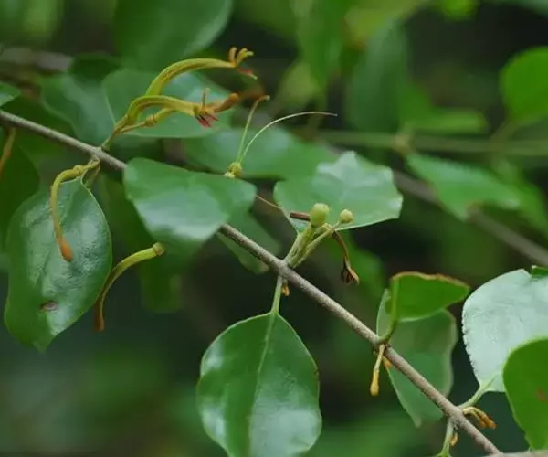 桑寄生(学名:Taxillus sutchuenensis (Lecomte) Danser),别称桃树寄生,苦楝寄生等。嫩枝、叶密被褐色或红褐色星状毛,有时具散生叠生星状毛,小枝黑色,无毛,具散生皮孔。产于云南、四川、甘肃、陕西、山西、河南、贵州、湖北、湖南等地。有祛风湿,益肝肾,强筋骨,安胎的功效。