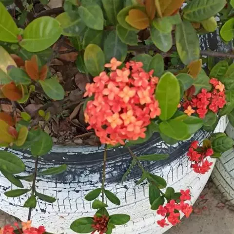 株型较高大,枝条相对疏松的龙船花品种,如大王龙船花、白龙船花等,它们一般花朵硕大,美艳无比,单植、丛植或群植都自成一景,3或5丛成群,既相对独立,又浑然一体。或与其它花木配植,增加空间变化和层次感。